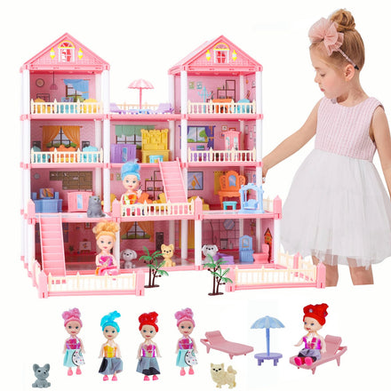 Princess Doll Houses,Dollhouse with 4-Story 11 Rooms,Doll House Playset with 4 Dolls 2 Pet,Playhouse Accessories and Furniture,Play Houses for Girls Ages 3 4 5 6 7 8 9 10 Year Old Toy Gift