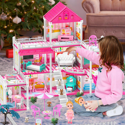 Princess'Castle House for Girls, Dollhouse Playset, 3-Story 8 Rooms Playhouse with 2 Dolls Toy Figures and Furniture & Accessories, Toy Gifts for Kids 3 4 5 6 7 8 9+ Year Old