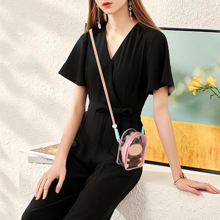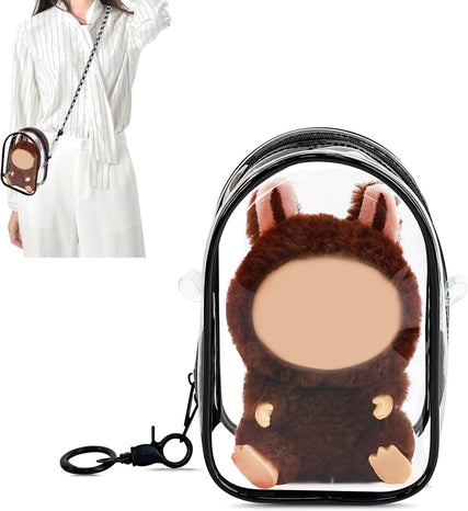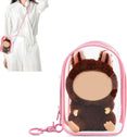 Protective Case for Plush Doll, Clear Hanging Display Case, Crossbody Doll Storage Bag, PVC Storage Case Cover for Figures, Dolls (Pink)