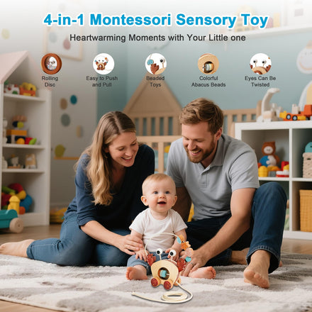 - 👀【4-in-1 Montessori Sensory Toy】 This pulling toy combines four functions: bead shaking, bead spinning, wire roller coaster bead maze & twisted eyes. It supports early childhood skill development, including hand-eye coordination, gross motor skills, and spatial awareness, great for encouraging children to crawl.