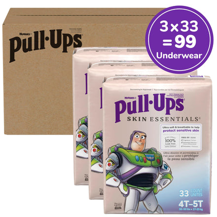 - Pull-Ups Boys’ Skin Essentials Potty Training Pants: 99 toddler training pants, size 4T-5T(38-50 lbs) (3 Packs of 33, 99 training underwear total)
