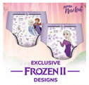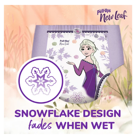Exclusive graphics of Disney's Frozen II include a wetness indicator that fades when wet to help your child learn to potty train