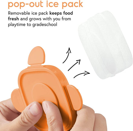 • REMOVABLE ICE PACK KEEPS FOOD FRESH: Thanks to the integrated cooling system with a removable icepack designed to clip into the lid, your baby snacks and food stay fresh for hours