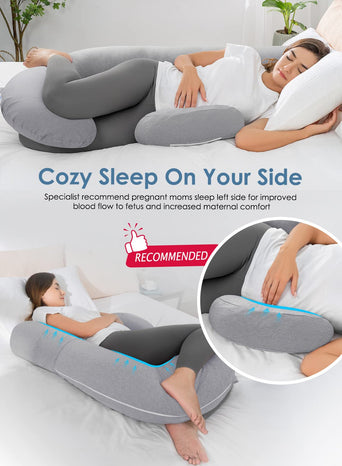 • Side Sleeping Comfort: QUEEN ROSE new PATENTED F pregnancy pillow is designed for side sleeping, which is recommended for expectant mothers. It provides support for the growing belly, back, and hips with a smaller size, ensuring a comfortable and restful night’s sleep