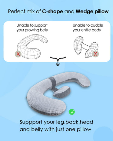 • Comfort for Mommy: 1 : Replace multiple useless regular pillows to support your head, neck, legs, and back just with this All-IN-ONE pillow. 2 : Promote your blood circulation to reduce body swelling and promote baby growth healthily. 3 :Keeps you sleep comfortably in the doctor recommended side sleeping position.