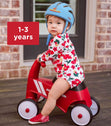 Details: Scooting around has never been easier or more fun with Radio Flyer’s Scoot About® Sport! The working steering helps your child develop gross motor skills and learn how to steer. The ergonomic design offers a clear kick-path for a smooth ride. Easy glide wheels are safe for indoor or outdoor use. Favorite toys can join every adventure in the under seat storage. Maximum weight capacity 42 lbs. For ages 1 – 3 years. For additional questions, support, or concerns, please contact our customer service team at https://www.radioflyer.com/customer-service/ or 1 (800) 621-7613.