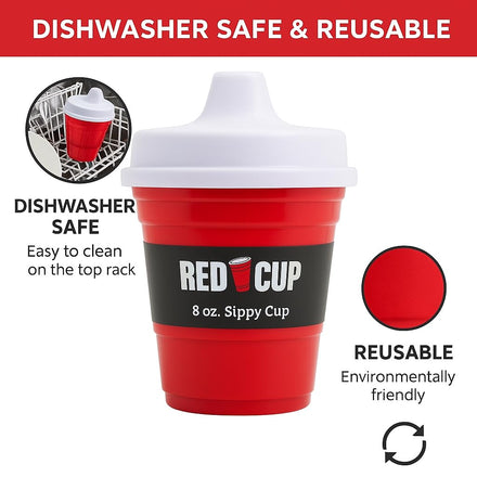 HIGH QUALITY RED BABY SIPPY CUP BY RED CUP LIVING At Red Cup Living, our cups are made from a strong, durable, reusable, and eco-conscious ABS plastic material, so you can feel good using these red cups. Our red sippy cup is designed to be used again and again. It has that cool look of the red cup from your college days but is made for your child from safe, non-toxic materials that also align with your current earth friendly adult values. This adorable sippy cup is the perfect party cup for babies and toddlers. It’s also great for helping your child transition from the bottle to regular cups.The lightweight but thick, plastic and spill-proof lid make it a sturdy and durable cup for babies to use and can withstand being thrown a bit by your spirited toddler. It's dishwasher and microwave safe, so you can give your child water, juice, or milk of any temperature. This sippy cup makes a cute baby shower gift or birthday gift for toddlers. Both kids and parents will appreciate it's novelty fun red cup design and sturdy, durable construction. PRODUCT FEATURES Red plastic sippy cup Perfect size for babies and toddlers Spill-proof and leak-proof lid Dishwasher safe Made from BPA free eco-conscious plastic OUR STORY It started with a question in 2008: Why wasn't our neighborhood more connected and what can we do about it? We wanted to answer that question and one word came to our mind - GATHER. Be the place people want to come and hang out. Red Cup Living came to life that day and we are still in the business of inspiring closer communities with reusable red cups. OUR PROMISE RED CUP LIVING is committed to the quality of our products and to offering the best customer service possible. If you have any issues with your order or product please contact us right away so that we can make sure you walk away a happy customer.