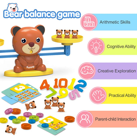 • Math Game: Math game: This little bear balance toy can teach children basic counting and math skills. Motivate children to become interested in mathematics through multiple game modes.