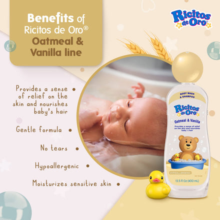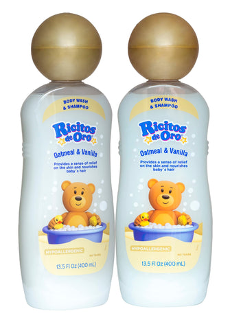 Ricitos de Oro Baby Shampoo and Body Wash, Formula with Oats and Vanilla, Hypoallergenic, Tear-Free Body Wash and Shampoo, 2-Pack of 13.5 Fl Oz Each, 2 Bottles