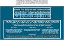 This package has been especially designed for your convenience. It is strong, moisture resistant, easy to handle, and easy to store. It contains 24 pounds of efficient, long-lasting D.E. filter powder. Just measure out the correct amount, pour, and enjoy cleaner, clearer pool water. Include four 6 pound charges. Use 3 pounds of D.E. per 20 square feet of filter area. Always follow your filter companies instructions. 1. Find the capacity (area of your filter equipment. (This figure usually appears on the outside of the filter housing, listed in square feet.) 2. Use 3 pounds of D.E. per 20 square feet of filter area. To extend filter cycles for pools up to 20,000 gallon capacity, add one full cup of D.E. to the filter inlet each morning and afternoon. Initially, you may experience shorter cycles as you clean unfiltered water or after heavy pool usage. Generally, this indicates the filter aid is working efficiently. Clean the filter as required and enjoy clean, clear swimming pool water.