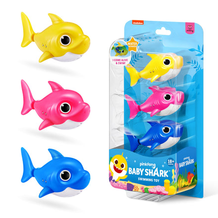 - MULTI-PACK: Set comes with 3x Baby Shark bath toys in assorted colors