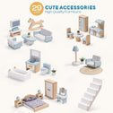 • ACCESSORIES 23 PCS: Embrace the Nordic-inspired design of this dollhouse adorned with 23 sleek and contemporary furniture pieces. Encouraging limitless creativity, this stylish dollhouse serves as a hub for imaginative play and role-playing adventures, fostering both creativity and cognitive skills.