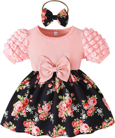 • Design:Adorable puffy sleeves and a delicate floral print add a touch of sweetness to this baby dress,while the waist bow accentuates the playful silhouette.The A-line cut provides a dreamy, princess-like look—perfect for twirling and playing!