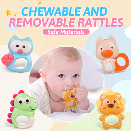 • 【Detachable Music Box and Rattles】The music box can be disassembled at will, use it as a standalone player or projector, very convenient for baby to play. Five rattles, including dinosaurs, lions, owls, foxes, and ball, can be removed for easy cleaning, made of safe and non-toxic materials, and 4 of the animal shaped rattles can also be used as baby teethers. Combining the music box, projector, teethers and rattles as one toy to satisfy your baby's curiosity and accompany your child's entire childhood growth.