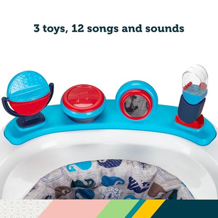 - PLAYTIME FUN Our child walker plays 12 different songs designed to amuse and delight, while stimulating baby’s visual and auditory senses. It includes a large tray that’s great for snacks, with plenty of room for baby to play with toys.