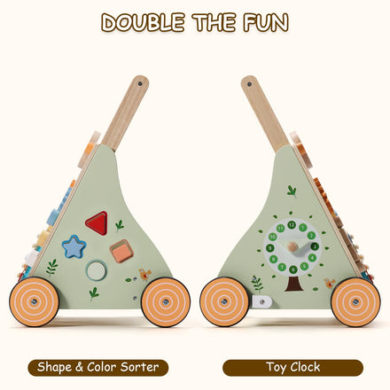 • MULTI-FUNCTIONAL BABY WALKER: The Baby Push Walker comes equipped with many Montessori sensory activity toys, including Interlocking Gears, Shape & Color Sorter, Tree Maze, Mirror, Xylophone, Colorful Beads, Rotating Blocks, Toy Clock, providing a diverse range of play experiences for your baby