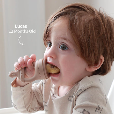• Brighten up Teething Time - Our food feeder is super easy for babies to hold/chew and for parents to open/close like a breeze. The soft pouch only allows small pieces to pass through, and the teething part beautifully resembles a pacifier for soothing sore gums.