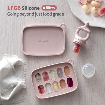 SAMiGO Baby Food Fruit Feeder and Breastmilk Popsicle Mold Set, Silicone Fruit Teether, Food Feeder Pacifier for Teething Relief, Freezer Tray, Baby Feeding Essentials, 4 Months+