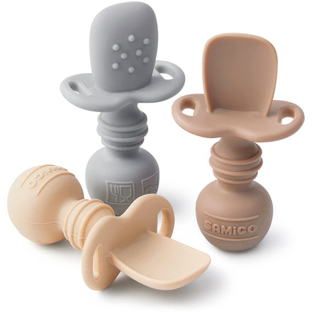 SAMiGO Silicone Baby Spoons Self Feeding 6+ Months - Infant Toddler Utensils - First Stage Baby Led Weaning Feeding Supplies - Set of 3 Pack