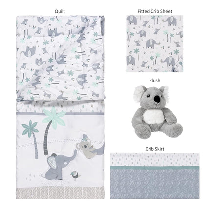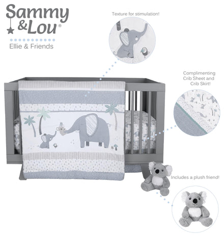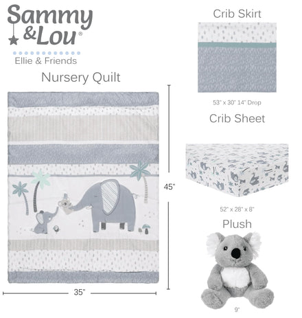 Sammy & Lou Ellie & Friends 4-Piece Baby Crib Bedding Set, Includes Quilt, Fitted Crib Sheets Neutral, Crib Skirt, and Plush Toy
