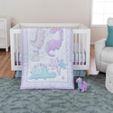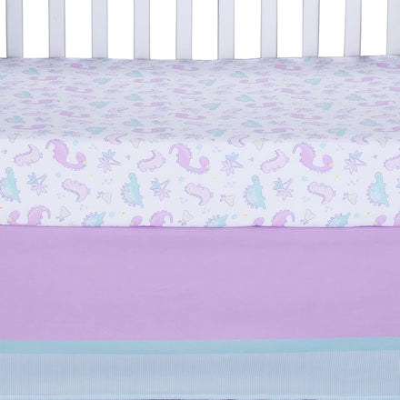 Sammy & Lou Tiny Dinos 4-Piece Baby Nursery Crib Bedding Set for Girls, Includes Quilt, Fitted Crib Sheet, Crib Skirt, and Plush Toy