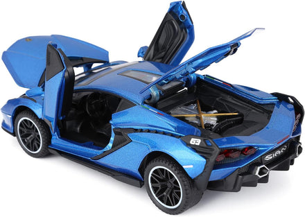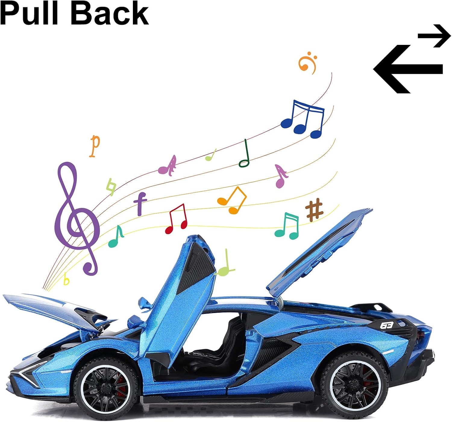 SASBSC Lambo Toy Cars Sian Fkp37 Diecast Metal Model Car with Light and Sound Pull Back Car Toys for Boys Age 3 + Year Old (Blue)