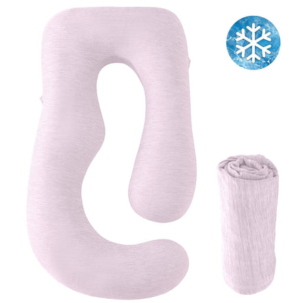 Sasttie Cooling Pregnancy Pillow Cover, 57-inch U-Shaped Pregnancy Pillow Case, Cooling Maternity Pillow Cover Fits 55 to 57 Inch Pregnant Pillow, Pink