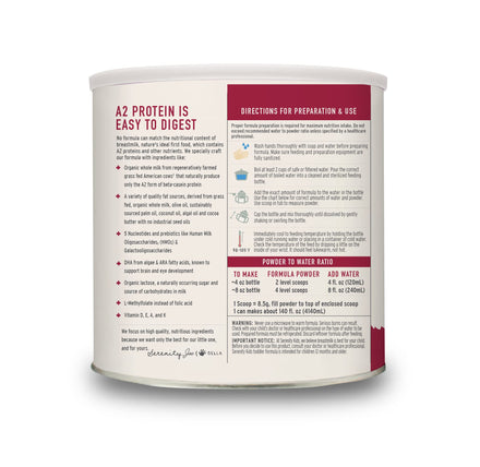 • GENTLE GRASS FED A2 MILK: The Serenity Kids A2 toddler formula uses A2 protein instead of A1, making it easier on little tummies. It's creamy like regular milk but more digestible, a perfect choice over goat milk powder or other dairy options