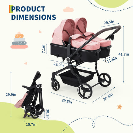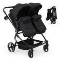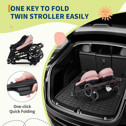 • Effortless One-Click Folding: The double stroller side by side features a one-key quick folding system with a secure double lock, making storage and travel with twins or two kids a breeze. Perfect for car trips, vacations, or everyday outings
