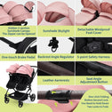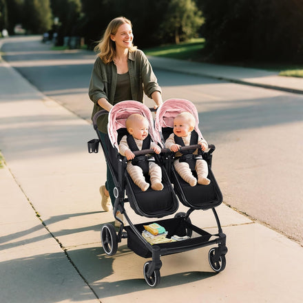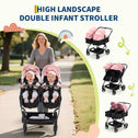 Side by Side Double Stroller for Twins, Lightweight Compact Foldable Baby Travel Stroller with High Landscape Seat, Adjustable Canopy & Recline for Infant and Toddler, Pink