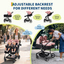 • Customizable Comfort for Every Age: Both seats offer adjustable backrests and multiple recline modes—sleeping, resting, and sitting—to ensure your babies or toddlers always ride in comfort. Ideal for growing twins or siblings with different needs