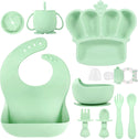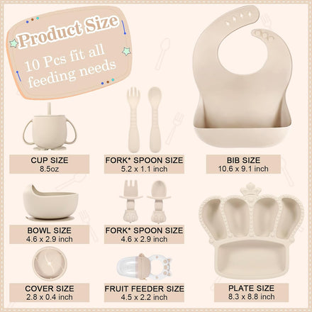 Silicone Baby Feeding Set 10 Pcs Baby Led Weaning Supplies Suction Bowl Divided Plate Baby Bibs Fruit Feeder Baby Spoons Forks Sippy Cup Toddler Utensil Sets Baby Essentials for Newborn Gift