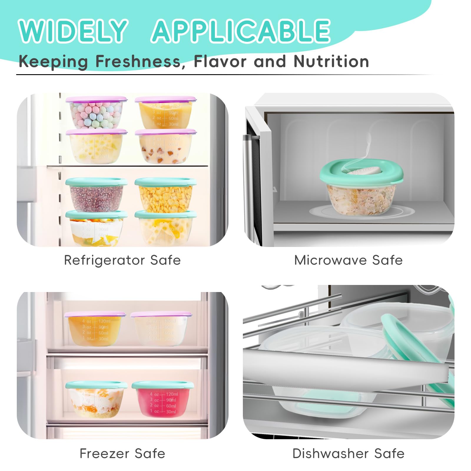 • Versatile Storage: These 4 oz silicone baby food containers with leak-proof airtight lids are perfect for storing homemade purees, snacks, and more.