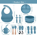 Silicone Feeding Set, 13PCS Baby Feeding Essentials with Suction Bowl & Plate, Spoons & Forks, Bib & Cup, Toothbrush, Baby Led Weaning Supplies for 6+ Months, Eating Essentials (Blue)