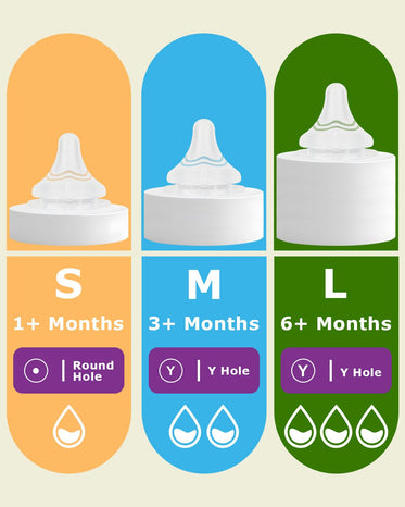 • Three Flow Rates to Grow with Baby: This silicone nipple offers Slow (1M+), Medium (3M+), and Fast Flow (6M+) options, ensuring a smooth and comfortable feeding experience at every stage.