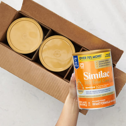 Similac 360 Total Care Sensitive* infant formula is gentle nutrition designed to ease common tummy troubles like fussiness and gas due to lactose sensitivity. Our infant formula is designed to help support the immune system, brain development, and digestive health. Similac is the #1 brand fed in hospitals. Ingredients in Similac 360 Total Care Sensitive have no artificial growth hormones† and are non-GMO.‡ * Not for infants or children with galactosemia. † Milk ingredients are derived from milk of non-rbST-treated cows, which is not different from milk of rbSTtreated cows. ‡ Ingredients not genetically engineered. § Offers may vary.