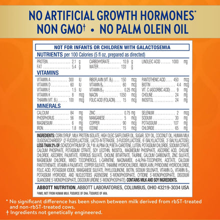 • NO ARTIFICIAL GROWTH HORMONES & NON-GMO: Similac was the first leading infant formula brand with no artificial growth hormones. Similac 360 Total Care Sensitive contains ingredients that are not genetically engineered