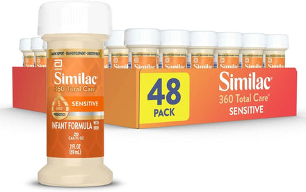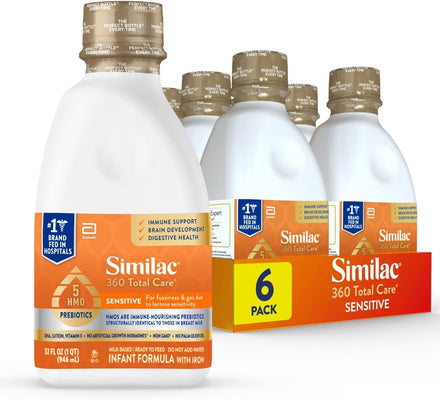 Similac 360 Total Care Sensitive Infant Formula for Fussiness & Gas Due to Lactose Sensitivity, Has 5 HMO Prebiotics, Non-GMO, Baby Formula, Ready to Feed, 8-fl-oz Bottle, Pack of 24