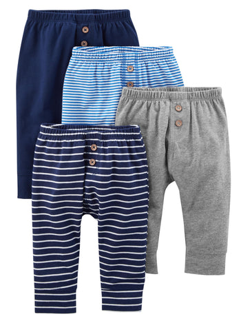 Simple Joys by Carter's Baby Cotton Pants, Pack of 4, Blue/Grey Heather/Navy/Stripe, 3-6 Months