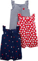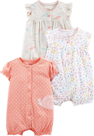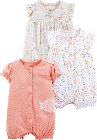 Add a burst of fun and convenience to your baby's wardrobe with this 3-Pack Snap-Up Rompers from Simple Joys by Carter's. Each romper features adorable prints and playful patterns that will keep your little one looking cute and comfy all day long. Designed with full-length snaps, these rompers make dressing and diaper changes a breeze—perfect for busy parents on the go. The short-sleeve, short-leg style is ideal for warmer days, keeping your baby cool and comfortable. Made from soft fabric, these rompers are gentle on delicate skin and easy to clean, ensuring they stay soft wash after wash. With a relaxed fit for active little movers, these rompers are the perfect everyday essential for your growing baby!