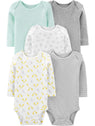 The Simple Joys(tm) by Carter's 5-Pack Long-Sleeve Bodysuit is just the pack to get a new mom started. *Sold as an 5-pack.* ,Round neckline with long sleeves. Three-snap crotch closure.