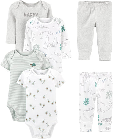 • Versatile 6-Piece Set: Includes four bodysuits (short-sleeve and long-sleeve) and two pairs of pants, offering a complete outfit for every day of the week