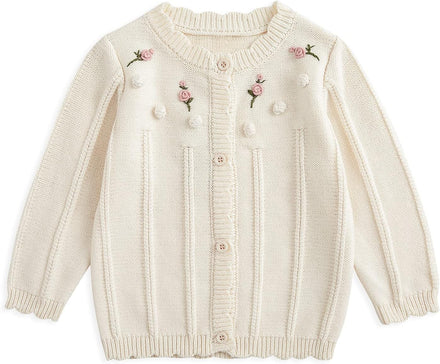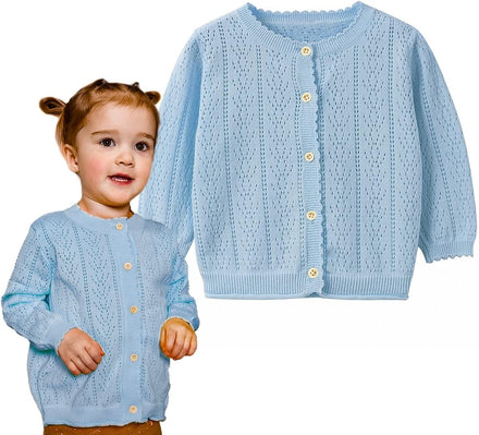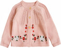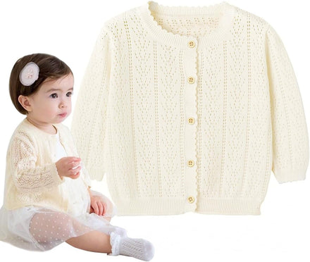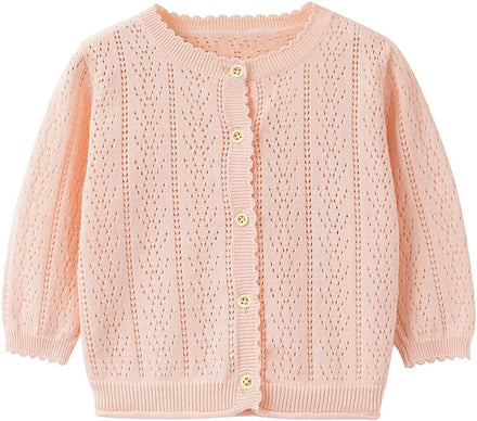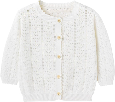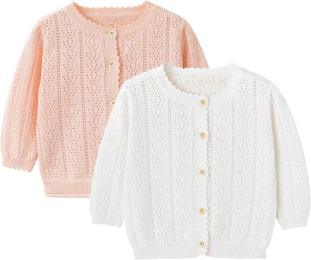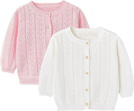 Simplee kids Baby Girl Thin Sweater Solid White Pink Cardigans for Toddler 0-3Years