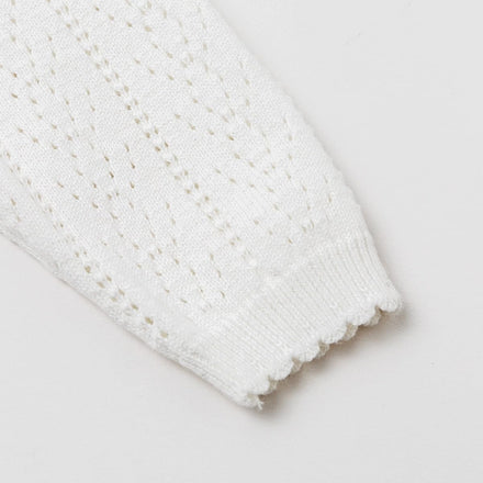 • ¤ BASICAL KNIT JACKET- Knit jacket with round neck and long sleeves; Front button closure and open knit motif