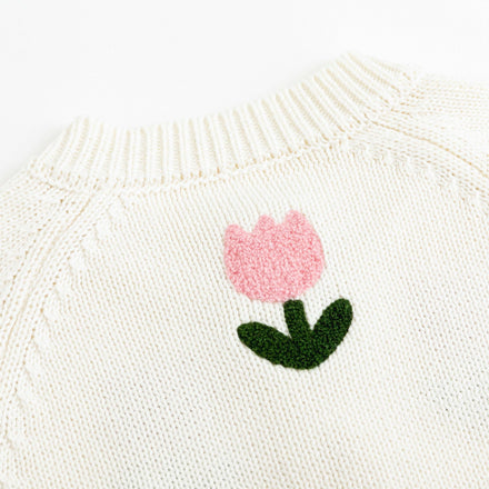 • Design✨Trendy pink tulip pattern element attached the sweater that brings a casual and chic look.