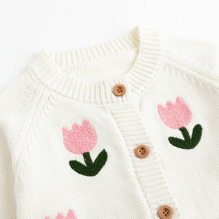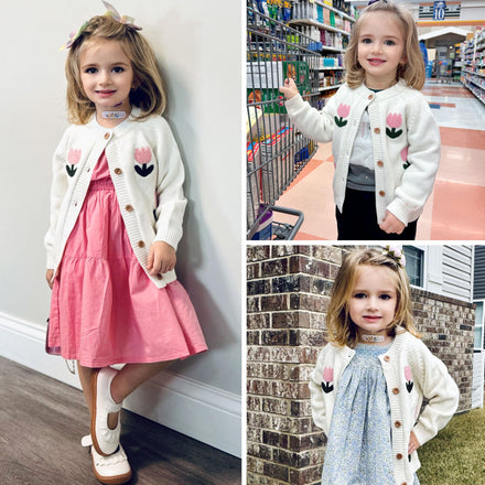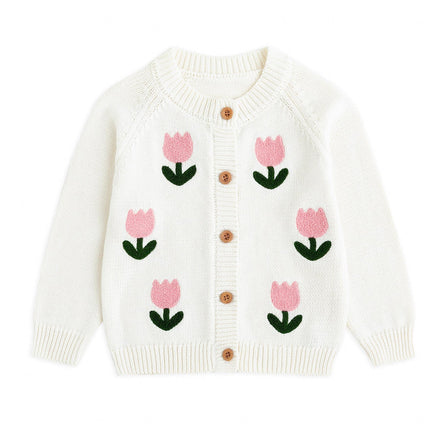 Simplee kids Baby Sweater Beige Girl Sweater Knitted Cardigan for Toddler 1-9Years Spring Kids Solid Jacket Beige