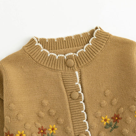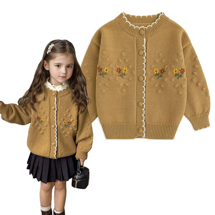 Simplee kids Toddler Sweater Little Girl Knitted Cardigan Flower Embroidery Coat for Spring and Fall Size 2-3 Years
