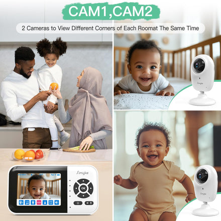 • Video Smart Baby Monitor wth 2 Cameras -- Simyke 2 cameras smart video baby monitor system allows you to easily monitor your children's every move during the day and night. Up to 1500ft of range, you can connected with each child, saves you a lot of headaches.