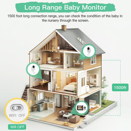 • Increased Battery Capacity -- The no WiFi baby monitor is upgraded with a high capacity 2500mah battery, The display can be used for 6 hours with the screen on all the time, and you can use it for 10 hours in VOX power saving mode.
