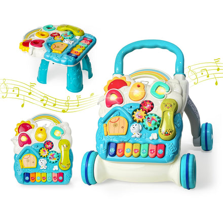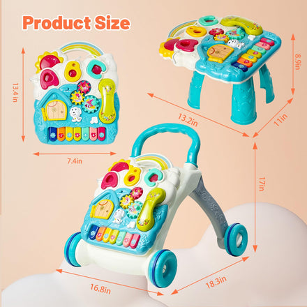 Sit to Stand Baby Walker, Activity Center with Music and Light, Activity Table for Toddlers, Push Toys for Babies Learning to Walk, Early Education Toys for Infant Boys Girls 6 Months Up (Blue)